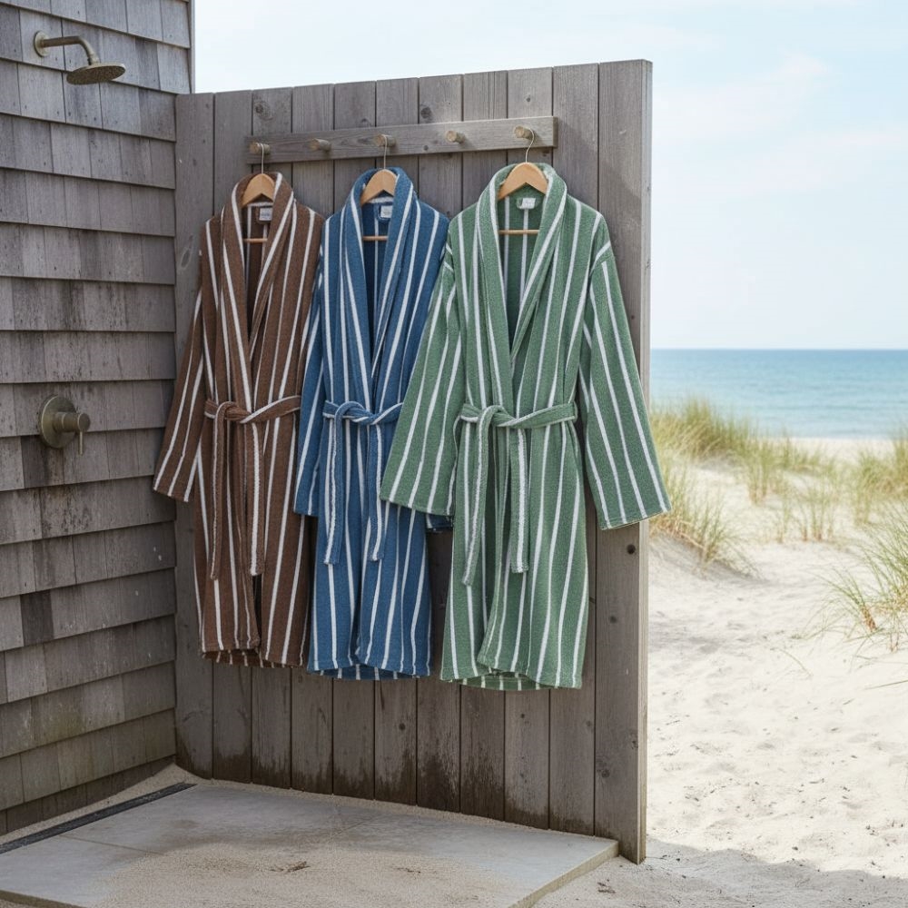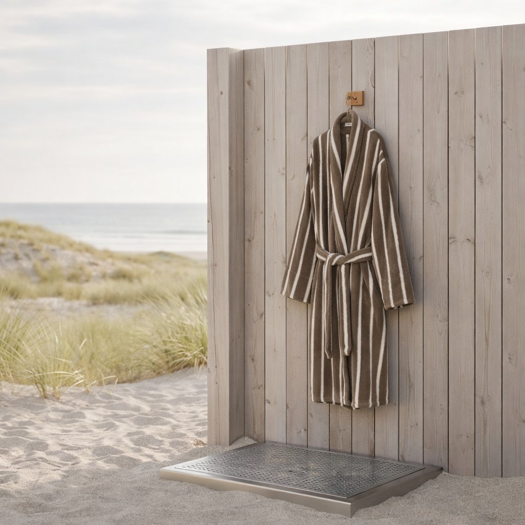 Bambus Badekåbe - S/M - Taupe- PrimaPrima badekåbe taupe strandprima badekåber på knager ved strand