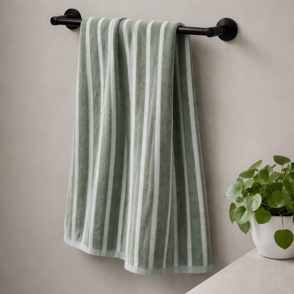 Bambus badelagen 90x150 cm - Stribet - grøn - Primabadelagen grøn