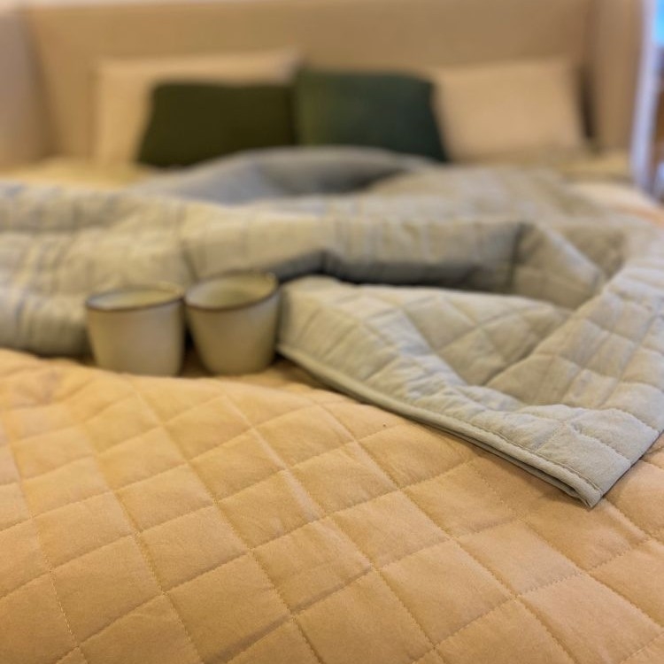 Det ensfarvet sengetæppe fra Norø er quiltet i små firkanter, hvilket giver et enkelt og stilrent udseende, udover at give et dekorativt mønster holder sømmene også fyldet på plads. Sengetæppet er blødt og smidigt og derfor let at håndtere og nemt at rede op med. Gunhild sengetæppet fås i flere forskellige størrelser og farver.