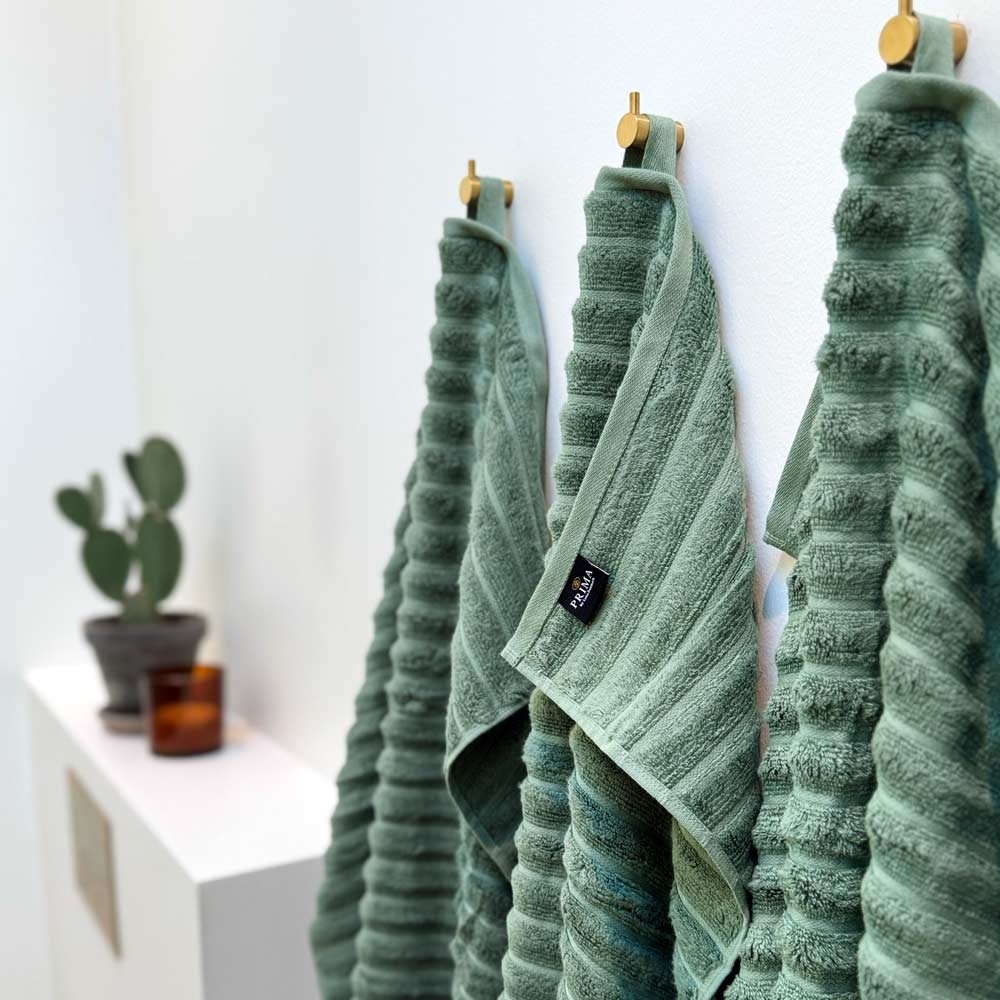 Zero twist håndklæder fra Prima by Luna DenmarkBambus håndklæder - Zero twist - støvet grøn - Pakke med 4 dele - Prima