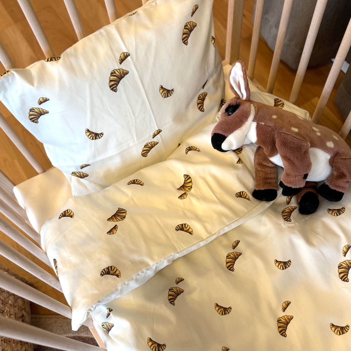 Junior sengesæt - 100x140 cm - bomuldssatin - Croissant - Luna DenmarkVores juniorsengetøj er designet med fokus på både komfort og funktionalitet.Sengesættet fra Luna Denmark har et smukt croissant print.Sengesættet er fremstillet i 100% bomuld.Sengesættet lukkes nemt med lynlås