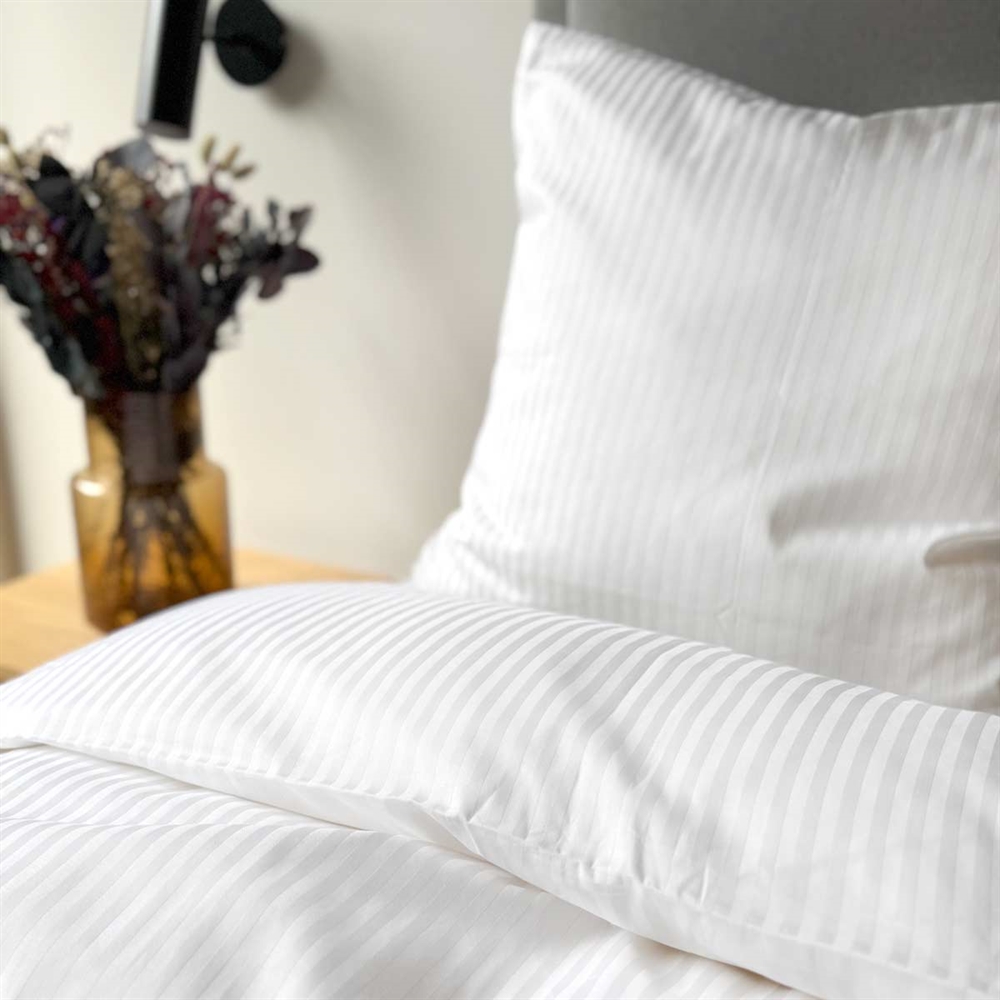 Bomuldssatin sengetøj - Smal stribet - hvid - Luna Denmark100% Bomuldssatin - Smal strib - hvid - Luna DenmarkSengesættet er fremstillet i 100% bomuld.Sengetøj - 140x200 cm - 100% Bomuldssatin - Smal strib - hvid - Luna DenmarkSengesættet fra Luna Denmark har et smukt hvid stribet printSengesættet lukkes nemt med lynlås