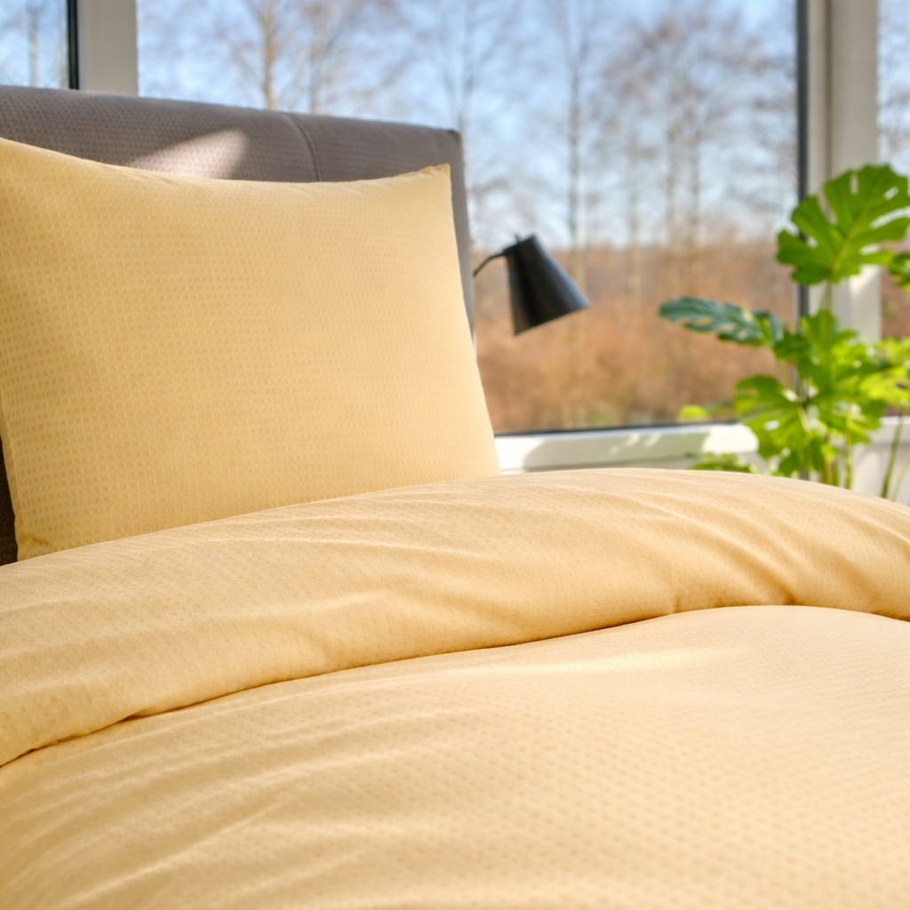 Sengetøj 140x200 cm - Blocks - Bomuldssatin - Gul - PRIMA by Luna DenmarkBlocks gul 140x200 på redt seng frontBlocks gul 140x200 på redt seng med planteLækkert og stilrent sengetøj i 100% bomuldssatin.Smukt og eksklusivt sengetøj til dig, der ønsker et roligt klassisk udtryk i soveværelset. Lukkes nemt med lynlås.