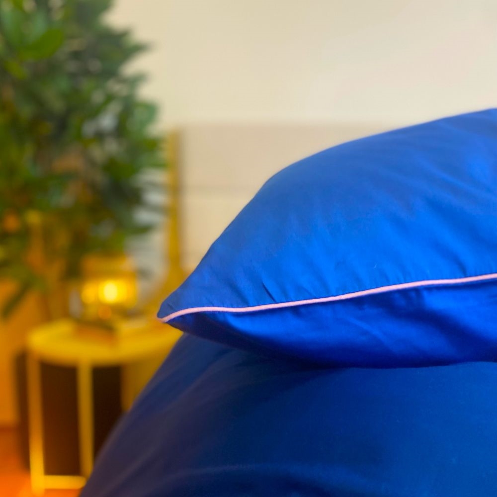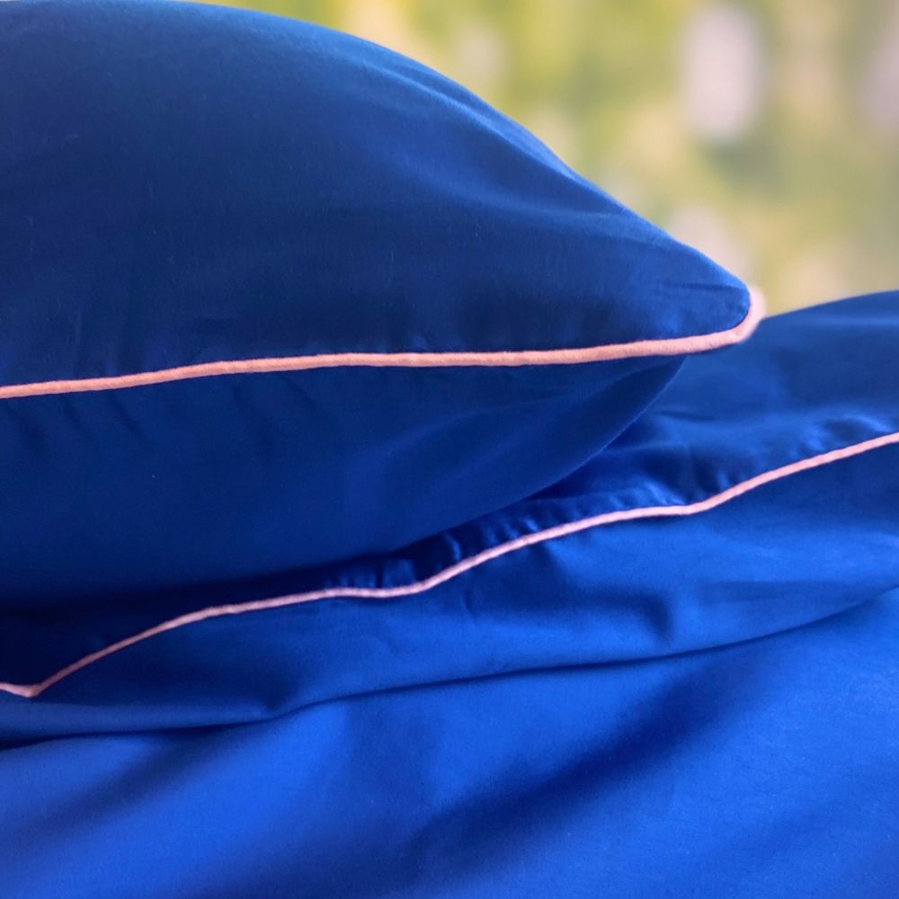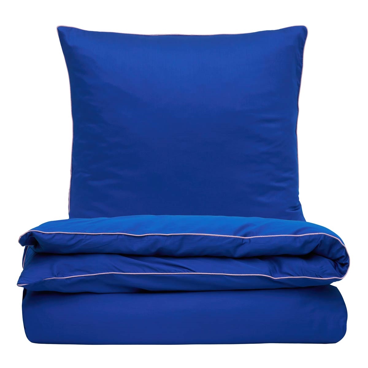 Sengetøj 140x200 cm - bomuldssatin - Una - blå med lilla piping - Luna Denmark