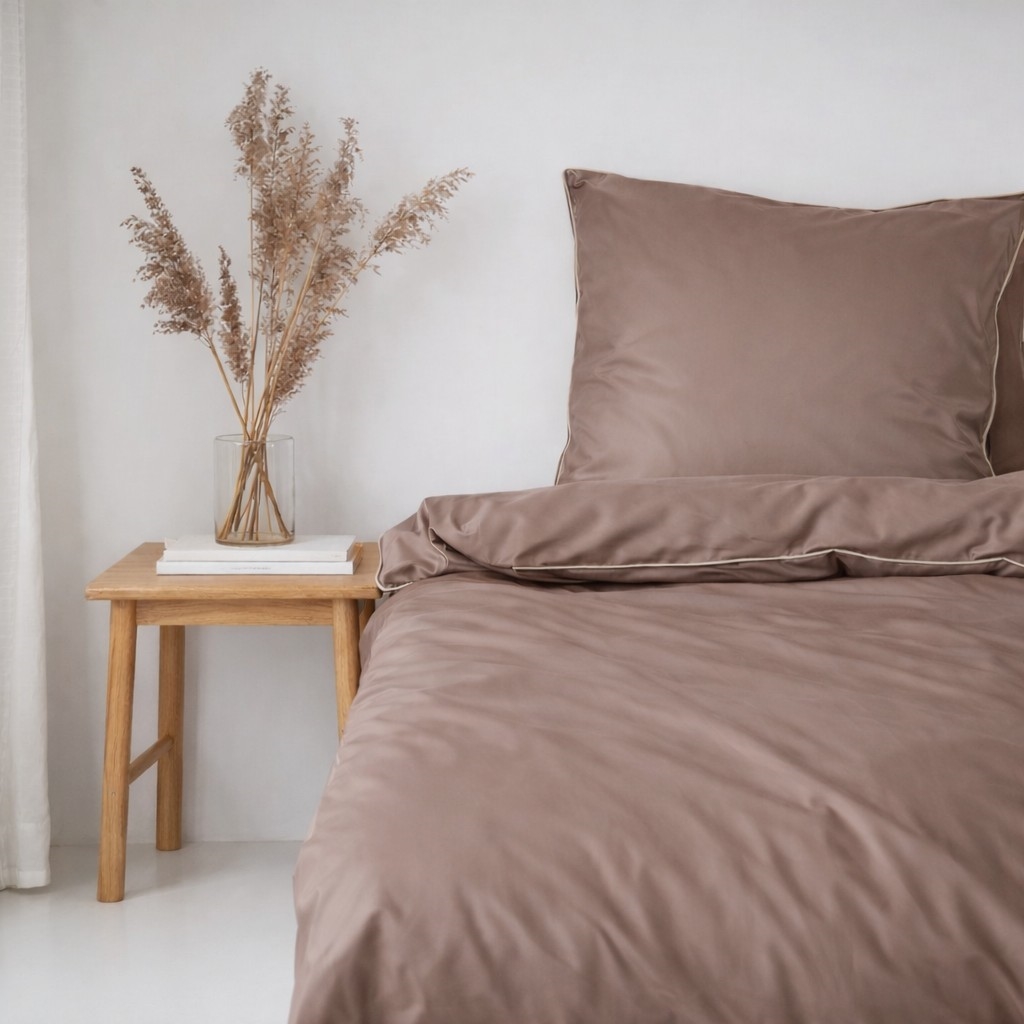 Sengetøj 140x200 cm - bomuldssatin - Una - taupe med beige piping - Luna Denmark
