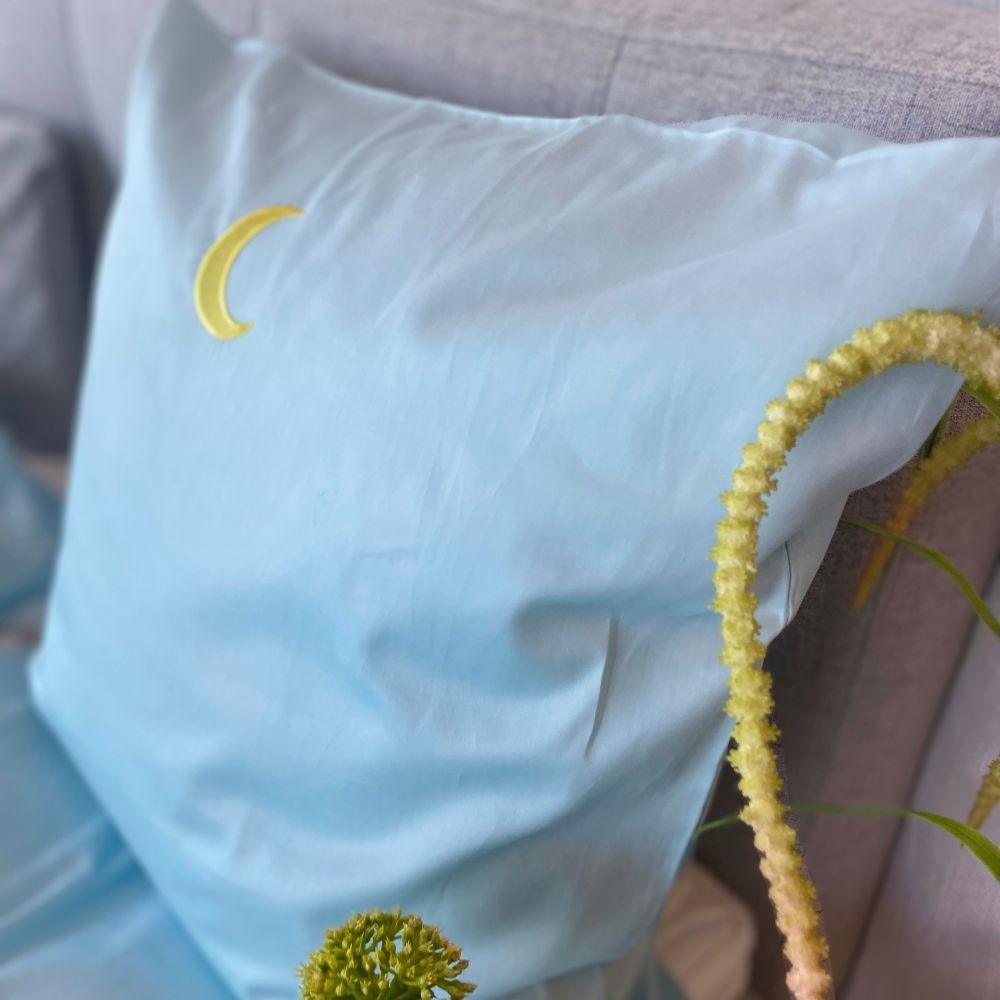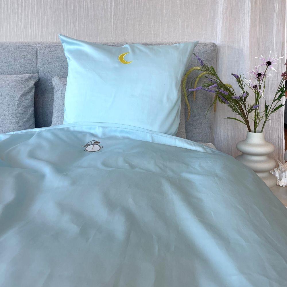 Sengetøj 140x200 cm - bomuldssatin - lys blå m. broderi - Luna Denmark
