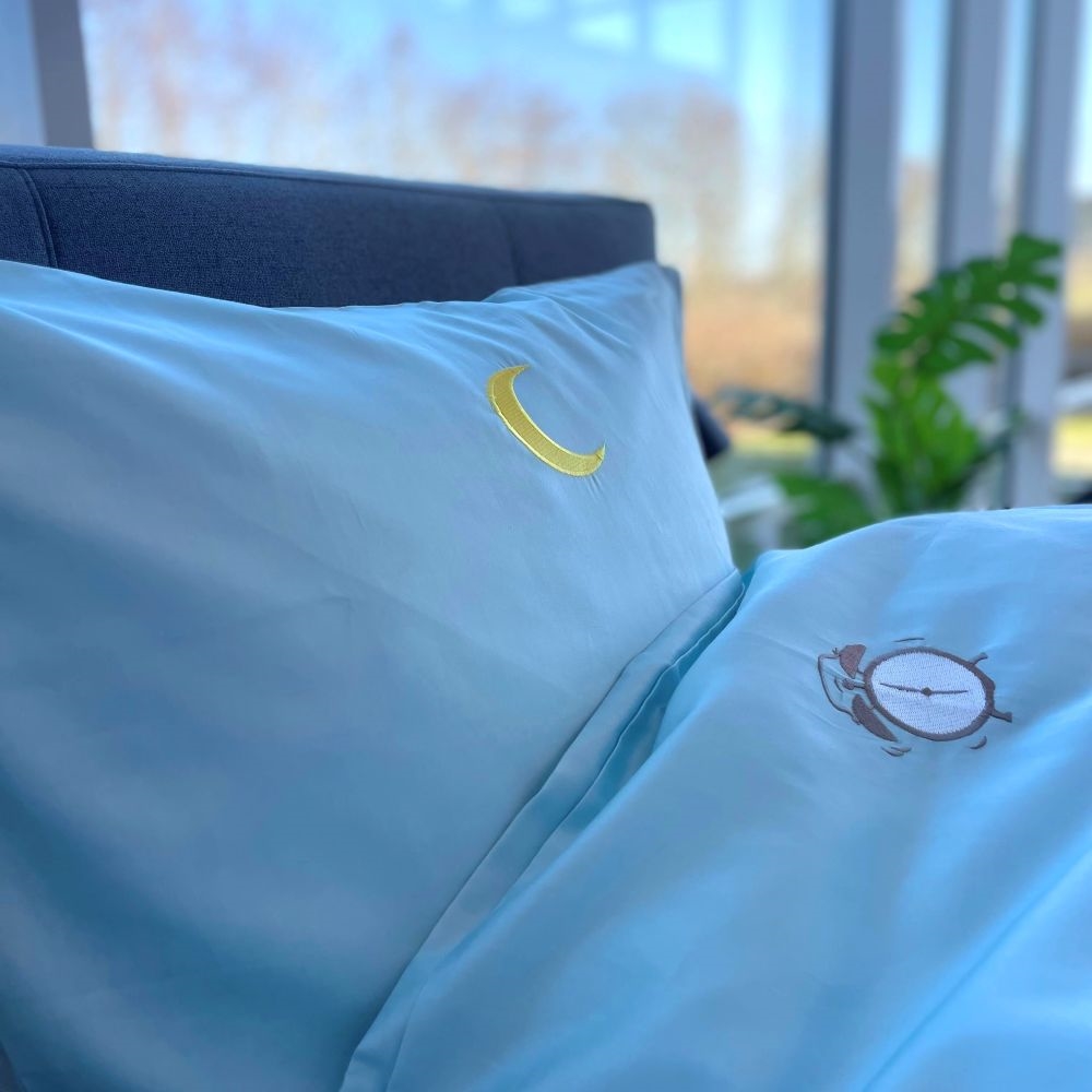 Ofte stillede spørgsmål om Sengetøj 140x200 cm - bomuldssatin - lys blå m. broderi - Luna Denmark