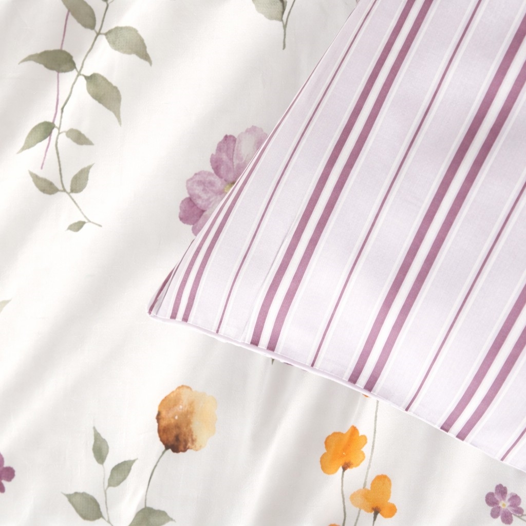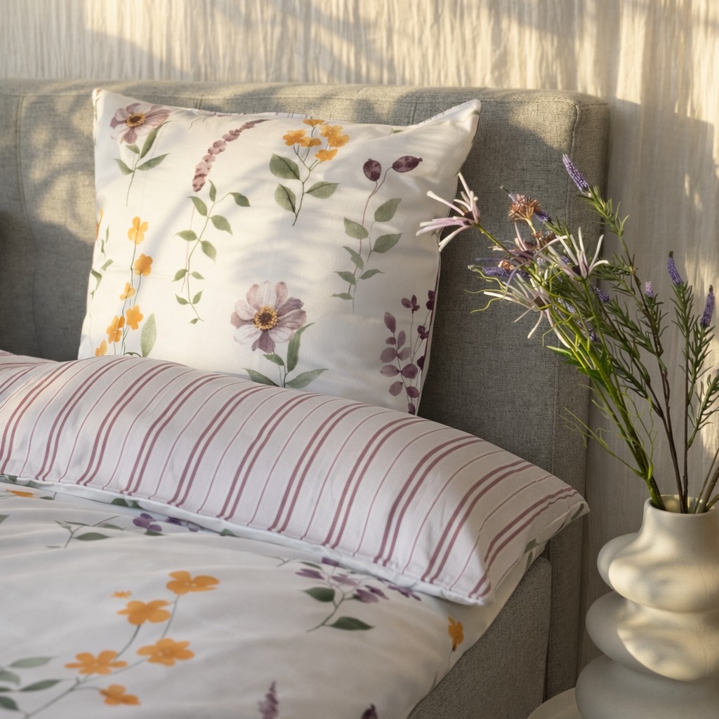 Sengetøj 140x200 cm - bomuldssatin dobbeltsidet - Blomst/Strib - pink - Luna Denmark