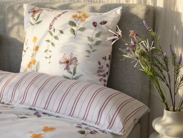 Ofte stillede spørgsmål om Sengetøj 140x200 cm - bomuldssatin dobbeltsidet - Blomst/Strib - pink - Luna Denmark