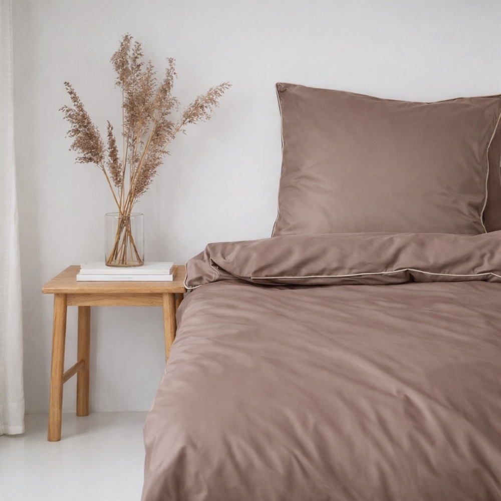 Sengetøj 140x220 cm - bomuldssatin - Una - taupe med beige piping - Luna Denmark