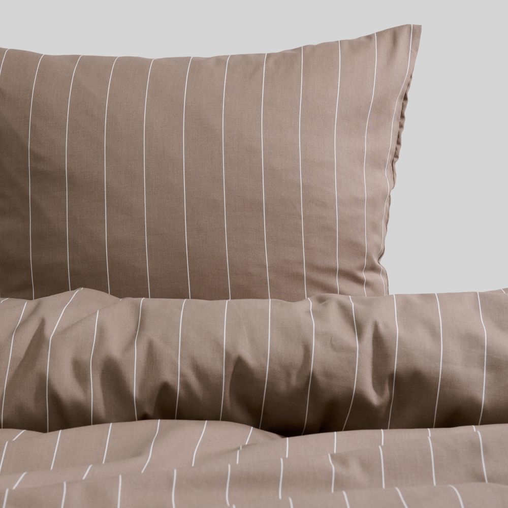 Enkelt og elegant sengesæt fra Luna Denmark med flot stribet motiv. Sengesættet er fremstillet i blødt bomuldssatin, der er ekstra blød, fin og merceriseret bomuld. Sengesættet lukkes praktisk og nemt med lynlås i både pude- og dynebetræk. Sengetøjet er vævet med en Tread Count 220 og er Oeko-Tex certificeret. Smukt sengesæt til dig, der ønsker et klassisk udtryk i soveværelset. Sengetøjet er merceriseret "soft finish".