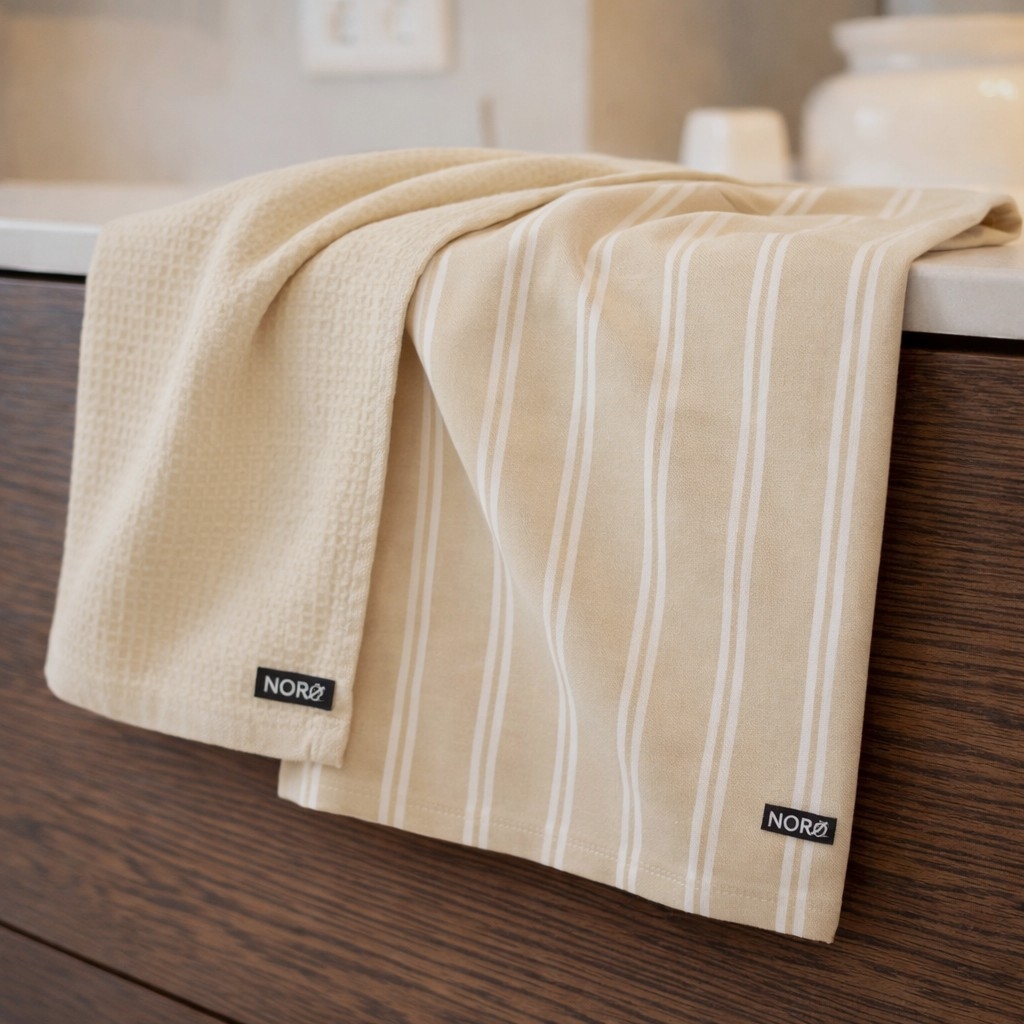 Gør opvasken lidt mere elegant med denne 2-pak viskestykker i klassisk, tidløst design. Viskestykkerne er fremstillet i 100% bomuld, som både er blødt, slidstærkt og meget absorberende, så du nemt kan tørre glas, service og hænder. Med målene 50x70 cm får du en god, praktisk størrelse, der er nem at håndtere, og som passer perfekt i køkkenet. Pakken består af et viskestykke med en almindelig vævet overflade samt et viskestykke med en vaflet overflade. Viskestykkerne tåler vask ved høj temperatur samt tørre tumbling, og kan derved nemt friskes op.