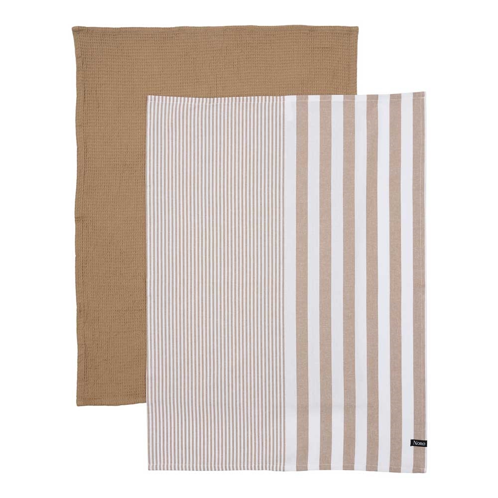 Gør opvasken lidt mere elegant med denne 2-pak viskestykker i klassisk, tidløst design. Viskestykkerne er fremstillet i 100% bomuld, som både er blødt, slidstærkt og meget absorberende, så du nemt kan tørre glas, service og hænder. Med målene 50x70 cm får du en god, praktisk størrelse, der er nem at håndtere, og som passer perfekt i køkkenet. Pakken består af et viskestykke med en almindelig vævet overflade samt et viskestykke med en vaflet overflade. Viskestykkerne tåler vask ved høj temperatur samt tørre tumbling, og kan derved nemt friskes op.